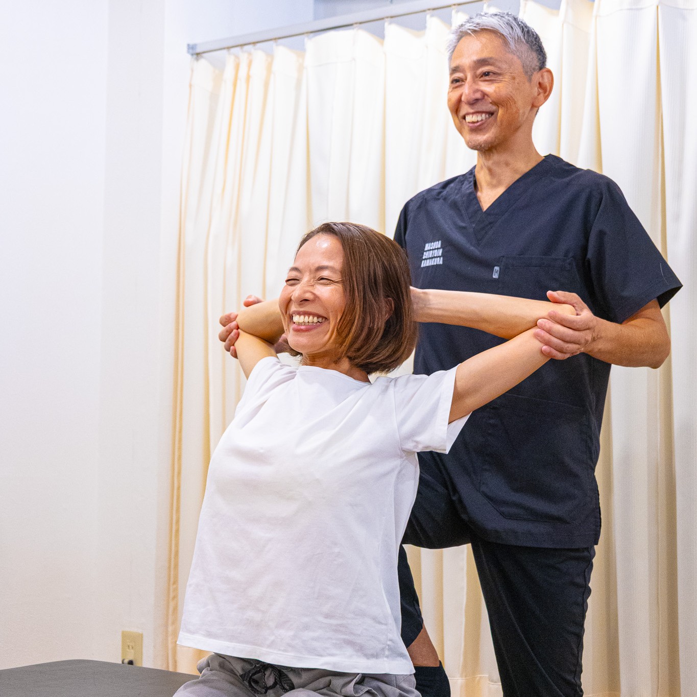 鎌倉で25年に渡り、腰痛、肩こり、五十肩、股関節痛、ひざ痛、坐骨神経痛、脊柱管狭窄症などに対して施術と運動指導を行なっています。